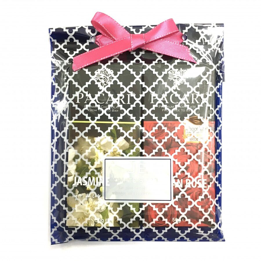 | [原材料] | 【ローズ】カカオマス、きび糖、ココアバター/乳化剤(ヒマワリレシチン)、バラ香料 【ジャスミン】カカオマス、きび糖、ココアバター/乳化剤(ヒマワリレシチン)、ジャスミン香料 |